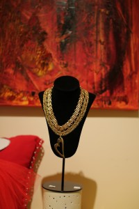 Vi har et kreativ rom der det er utstilt vakre håndlagede smykker blant Elisabeths malerier.